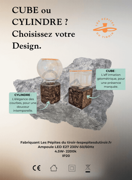 Fabriquée artisanalement en Auvergne, cette lampe incarne le savoir-faire de Les Pépites du Tiroir, une marque engagée dans une démarche locale et écoresponsable.