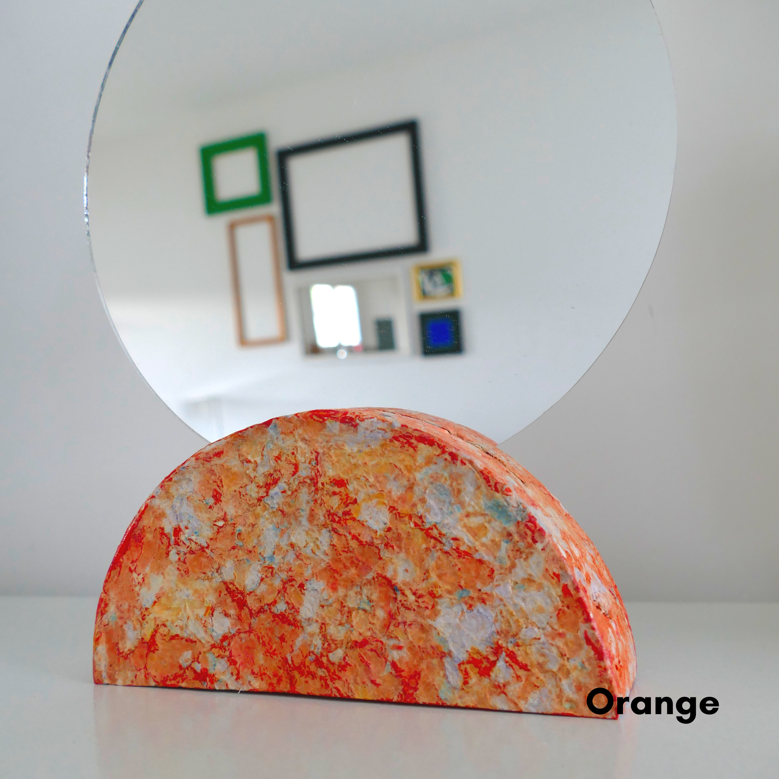 Élégant et écoresponsable, ce support miroir en forme de demi-lune est fabriqué à partir de papier recyclé. Ses couleurs discrète et sa texture apportent une touche subtile et raffinée à votre intérieur.
