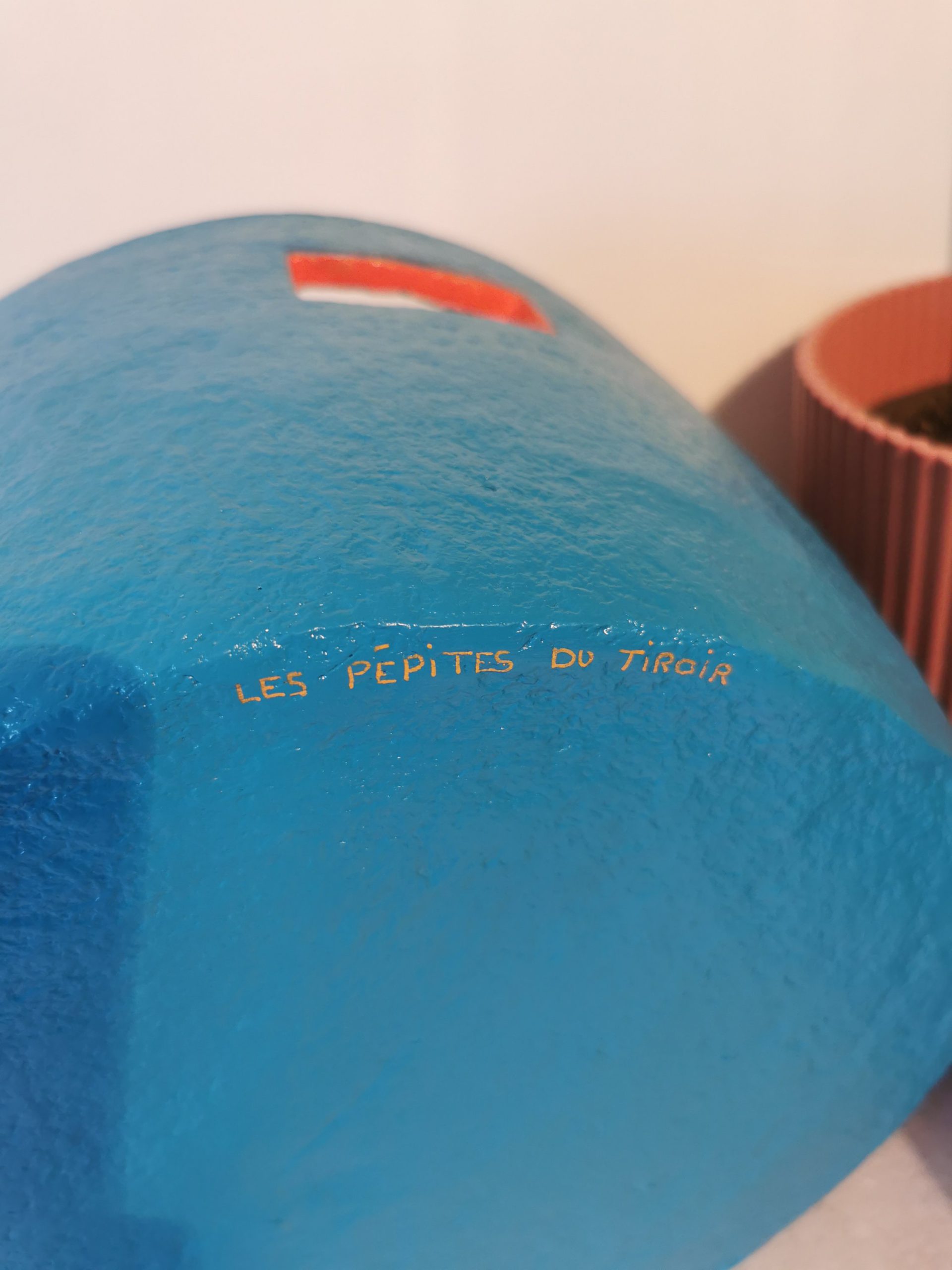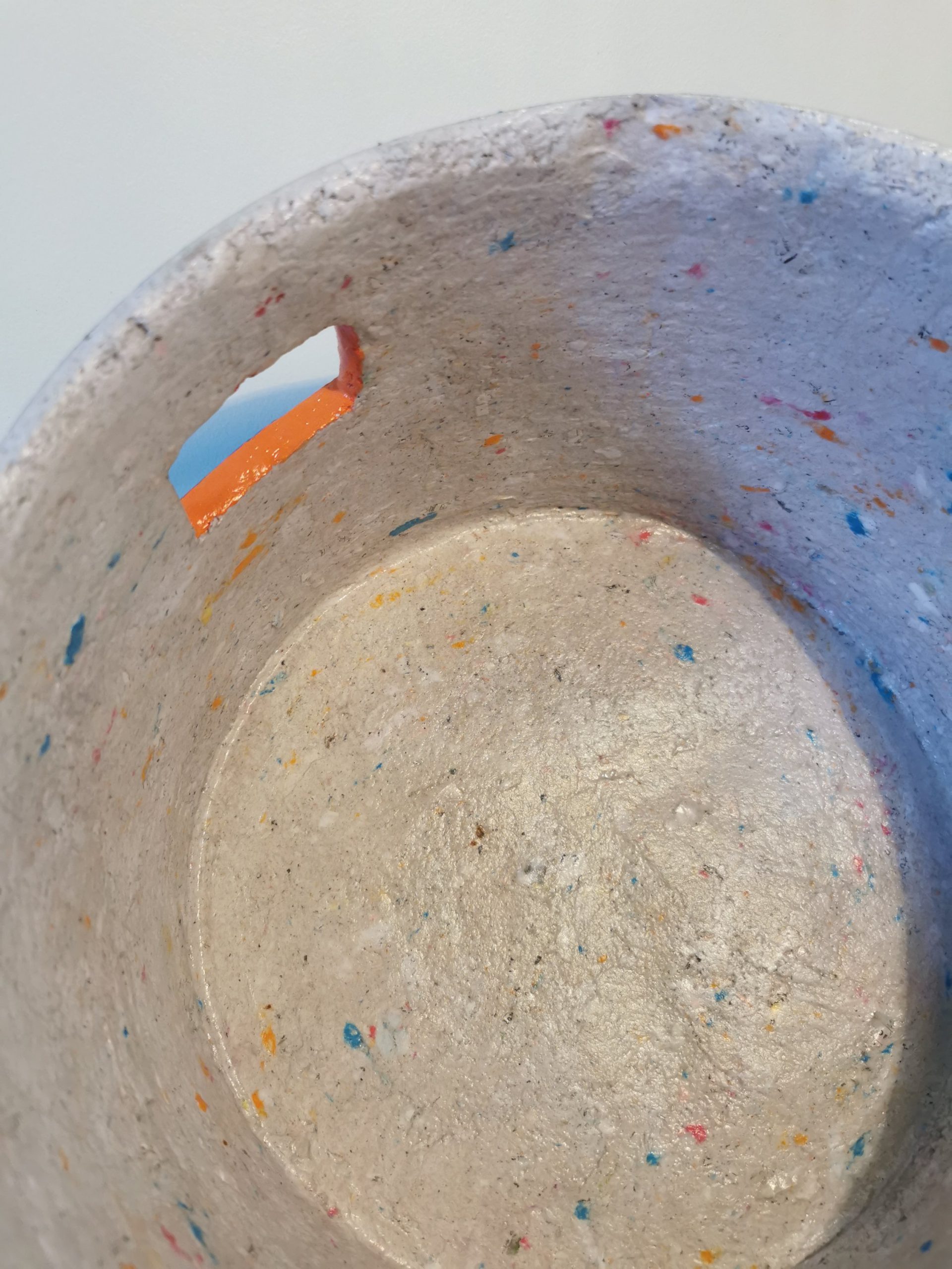 Panière XL  » Bleu et Orange  » de décoration écologique en papier mâché, recouvert d’un hydrofuge à base de résine biosourcée pour une protection optimale.