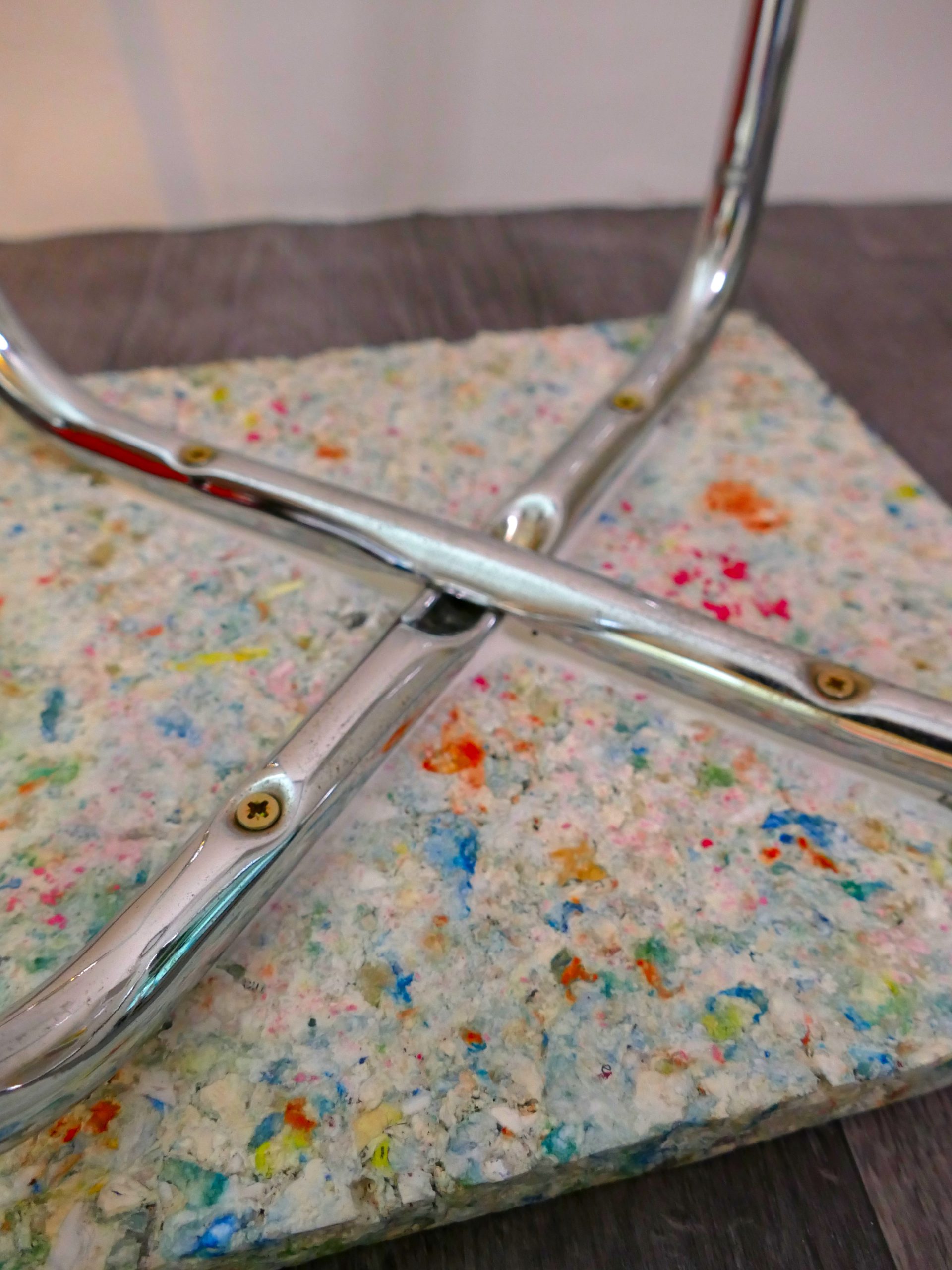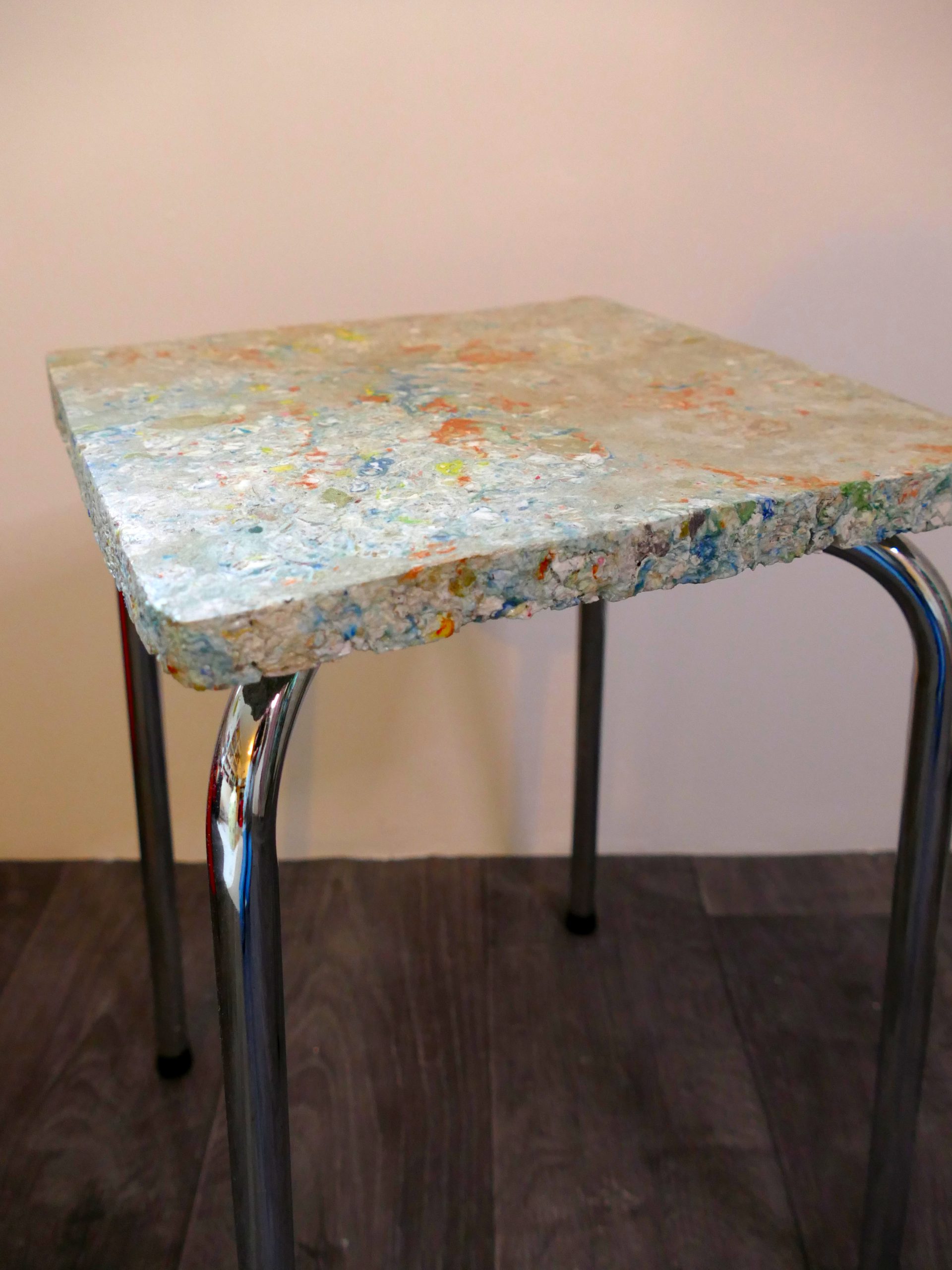Ce tabouret unique allie design et engagement écologique. Le piètement a été soigneusement recyclé à partir de matériaux durables, offrant une base robuste et stable. Le plateau, conçu en papier recyclé, apporte une touche contemporaine tout en contribuant à la préservation de l’environnement. Piece Unique.